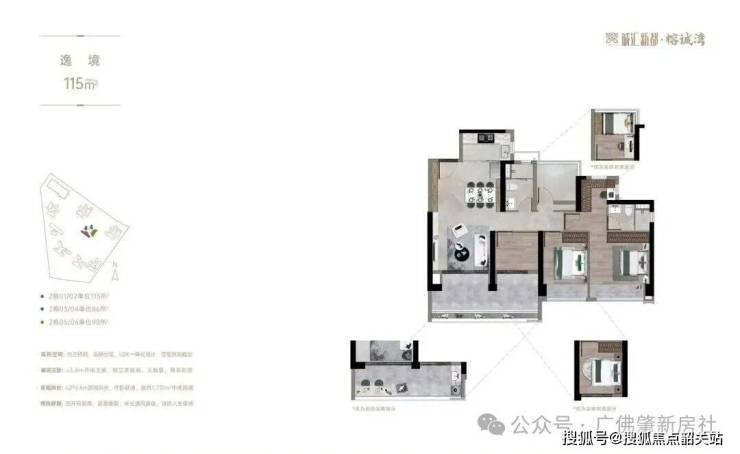 【户型】约85-98㎡瞰江望园三房;约138-165㎡全智能江景四房