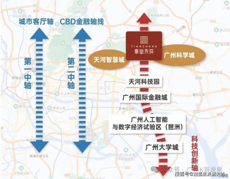 2. 振业天成位于广州第三发展中轴线“科技创新轴”上,处于天河智慧城和黄埔科学城双城交汇之地。科技创新中轴以琶洲为核心,汇聚金融总部、人工智能等产业,未来承载的GDP将超过1万亿元。项目立足湾区政策创新前沿,依托天河智慧城(2500家企业进驻,定位“广州硅谷”)和黄埔科学城(广深科技创新走廊重要“创新极”)的产业优势,以产城融合理念打造低密度社区。周边产业集聚带来大量人口与活力,项目自身以高品质现楼、完善配套,为居民提供宜居环境,助力开启理想生活新篇章,见证活力新城的发展。