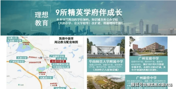 中学:广州实验中学(省重点,已开学)、华师附中知识城校区(省直属,初中 + 高中,建设中)、九佛二中、新侨学校(国际化双语)