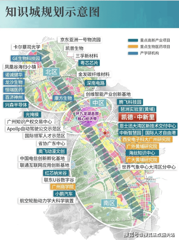 中新知识城是粤港澳大湾区唯一中国 - 新加坡国家级合作项目,被誉为 “湾顶明珠”,定位为国际科技创新中心重要引擎,承担 “知识创造新高地、国际人才自由港、湾区创新策源地、开放合作示范区” 国家使命。历经 14 年发展,扩容至 232 平方公里(相当于 37 个珠江新城),规划人口 100 万,注册经营主体超 2.45 万家,注册资本近 6248 亿元,产业项目 154 个,达产产值超 5500 亿元,芯片、纳米、生物医药、知识产权等高端产业集群成型。项目占位知识城南核心 “最值钱一公里”,小鹏汽车、中国纳米谷、奥飞文创中心、中新国际智慧产业园等千亿级产业环绕,高知人才汇聚、租赁需求旺盛、资产保值性强。