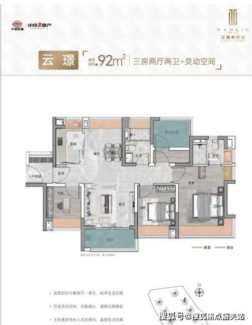 七、户型设计特色解析:72㎡三房两卫+92%实用率,定义刚需新标准