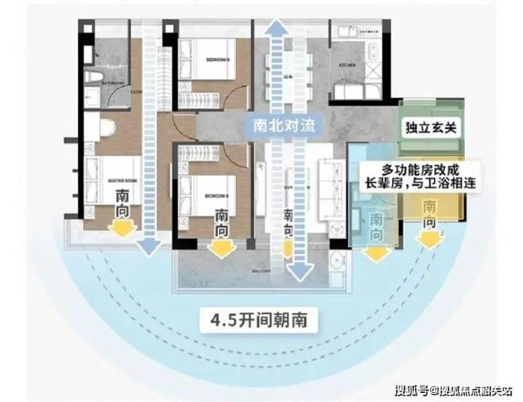 整体价值:约46㎡客餐厨空间+约26㎡南北对流主卧套房+4开间朝南+约14.5米南向采光面