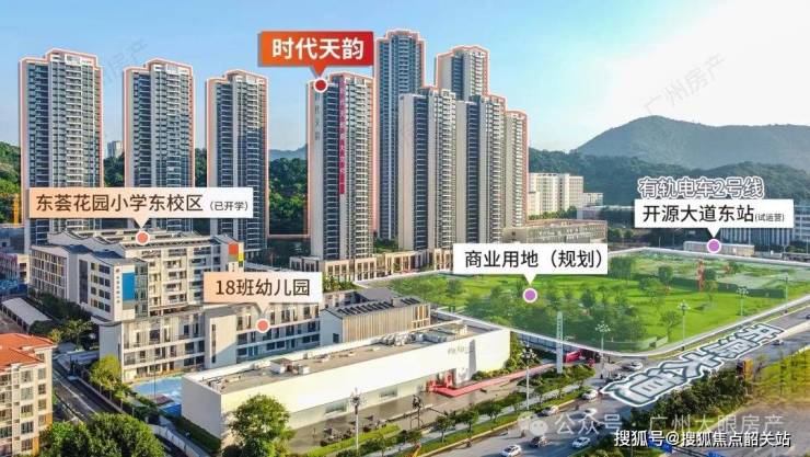 4. 学府环伺:家门口即有30班制的东荟花园小学东校区,师资力量雄厚,教师100%本科以上学历,拥有省特级教师、正高级教师、广州市名师等,被誉为“萝岗东风东”。配建18班幼儿园,解决幼儿入学难题。中学对口苏元中学、科学城中学、铁英中学、省教育研究院黄埔实验学校、北师大广州实验学校等黄埔区重点中学,全龄段优质教育资源护航,助力孩子成就菁英未来。