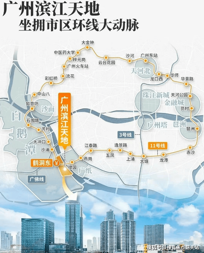 广州·滨江天地·尚滨道在交通规划上展现了前瞻性的布局,其核心优势在于与城市轨道交通系统的深度融合。项目门口的地铁11号线鹤洞东站,直线距离不足200米,这条被誉为广州首条环线的轨道交通,将项目与珠金琶CBD紧密相连。通过11号线,居民不仅可以快速抵达天河路—珠江新城商圈,还能便捷前往大湾区艺术中心或老西关永庆坊,体验多元化的城市生活场景。更为重要的是,该线路支持3站接驳22号线,未来南延段直通深圳的规划,进一步提升了项目在粤港澳大湾区中的交通枢纽地位。