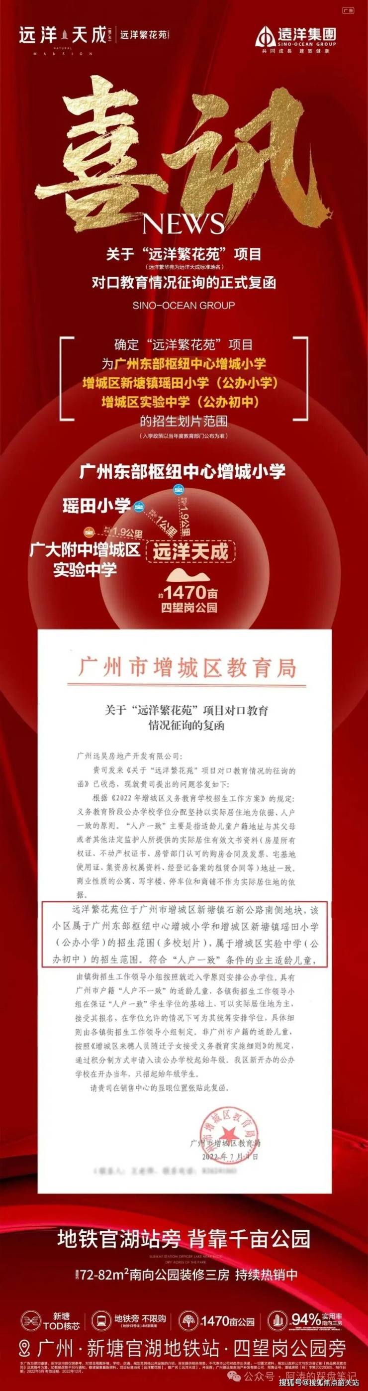 项目已获得广州市增城区教育局正式复函,明确划片范围,教育资源确定性极高。