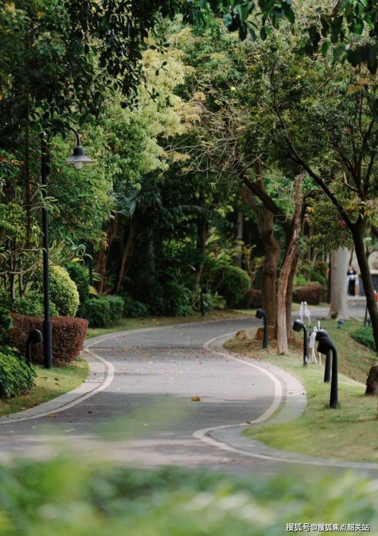 鹭鸣臺的园林设计,堪称一场关于自然与艺术的盛宴。项目霸气打造了25米宽的中轴绿廊,搭配约9米宽的环岛绿廊,形成了一条万籁俱寂、曲径通幽的超级绿轴,集“生态、社交、疗愈、休闲”于一体。这条绿廊不仅是连接各个区域的交通要道,更是居民日常休闲、社交互动的重要场所。漫步其中,花木的清香、摇曳的绿意、山石的禅意交织叠映,在雾森系统氤氲之下,如同宫崎骏笔下的童话秘境,脚步不自觉就慢了下来。这种设计不仅提升了社区的景观品质,更为居民提供了一个放松身心、亲近自然的绝佳场所。