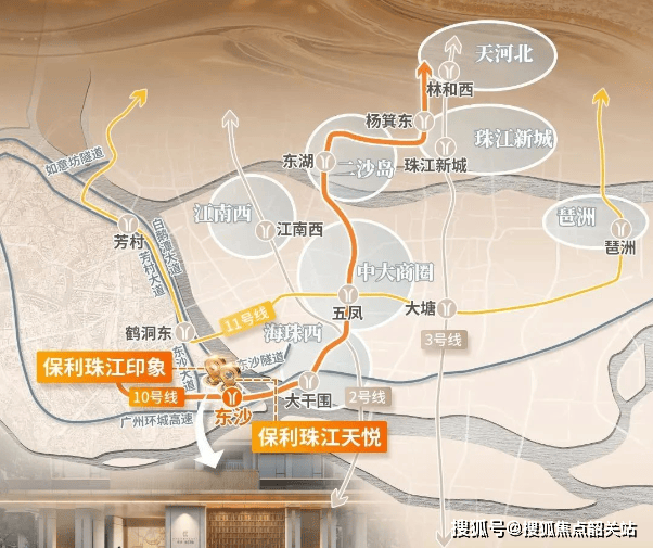 保利珠江印象交通便利,邻近白鹅潭大道和东沙石岗隧道,可通过环城高速和东新高速快速连接市区各地。家门口设有地铁10号线东沙站,距项目约700米,4站可达中大,6站到达滨江东,零换乘直达珠江新城。此外,项目还规划有水上巴士及港湾码头,预计三年内完工,进一步丰富居民的出行选择。