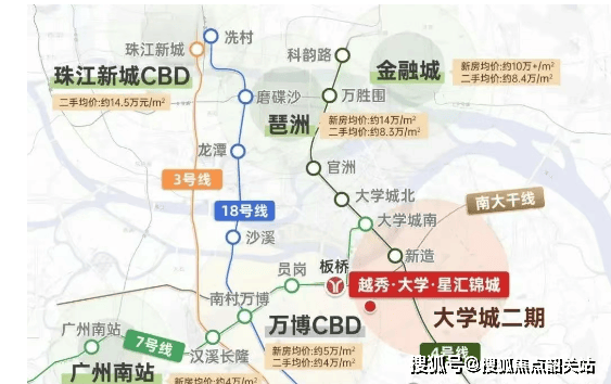 越大星项目位于国际创新城的核心启动区,紧邻地铁4号线新造站,交通便捷。该项目不仅地处琶洲以南,还被纳入大学城二期的规划版图,享有“南中国硅谷”的美誉。这里汇聚了丰富的教育资源与科研力量,成为广深科技走廊与科创中轴的交汇点。