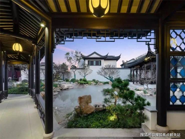 一路归来直至私家院落。主庭院的迎宾空间,便于客人与主人的互动,相对私密的侧院空间,为家庭成员提供了更舒适的庭院生活,配合院落中精心搭配的水石花木,静坐与玩乐之间,满足了一家子互动的趣味性与开放性。