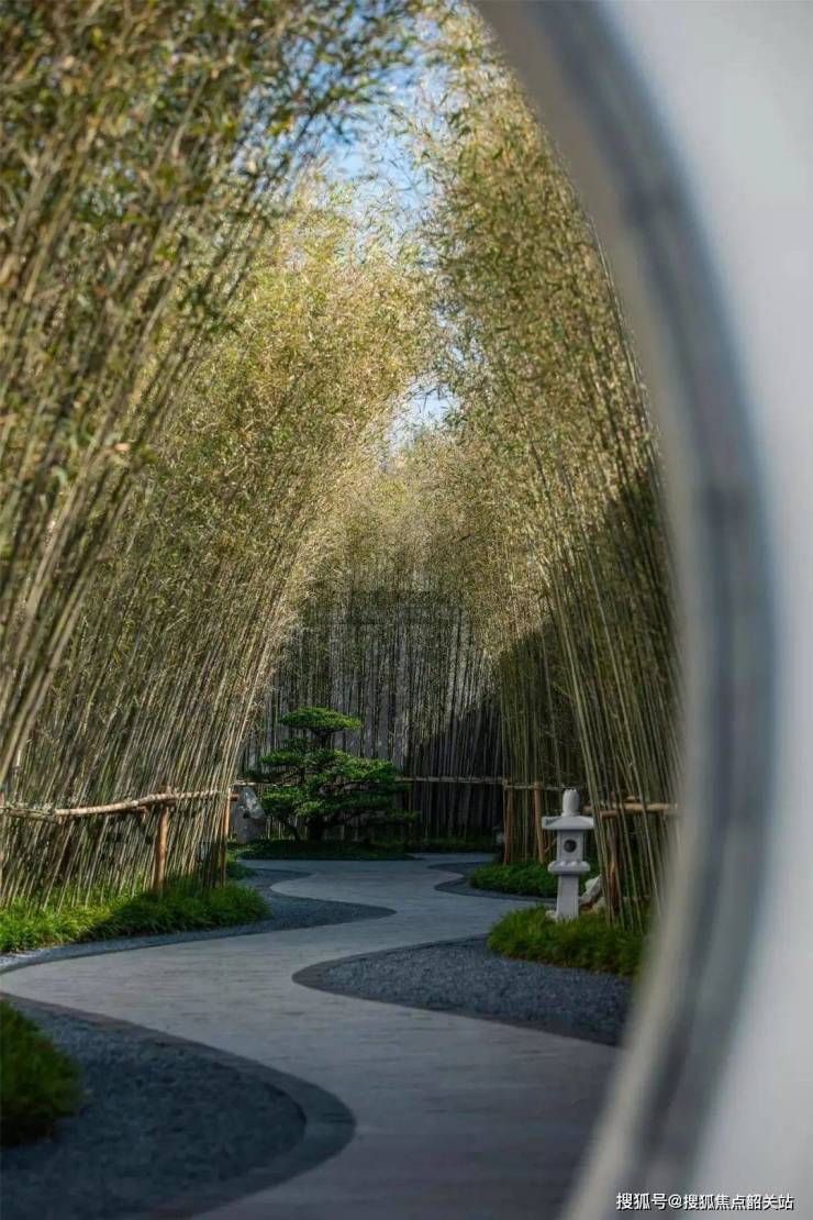 洞门是融创春风桃源巷道步移景异的转折之始。七重园景都有洞门相迎,形似宝瓶,似海棠,又似玉盘,通过洞门透视景物,在不同时刻的阳光下会出现各种各样的光影变化,如同一幅画卷,在桃源内徐徐展开。