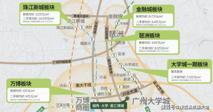越秀大学·星汇锦城位于番禺南村板块,临近国际创新城,距离万博CBD仅8公里,大学城10公里,处于番禺东西向发展的核心脉络上。虽属新城开发阶段,但依托南村成熟基底与万博商圈辐射,资源逐步集中。