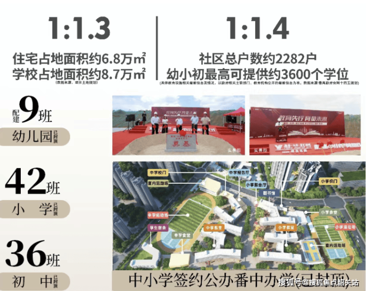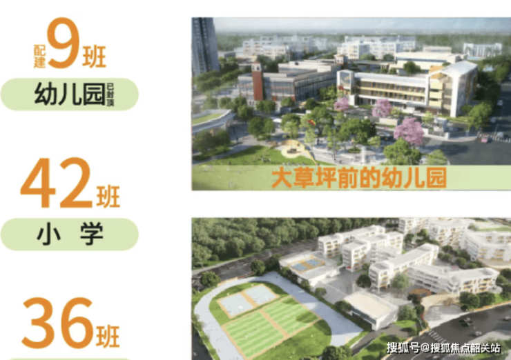 教育是项目核心优势,打造从幼儿园到初中的12年一站式教育闭环。社区内配建9班幼儿园,以及42班小学和36班初中,总计提供3600个学位,学位数量超过业主户数,保障业主子女优先入学。