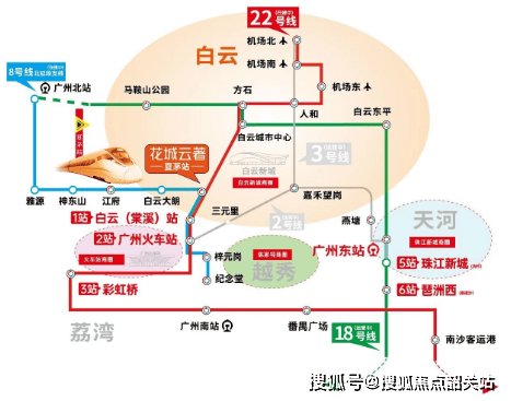 项目坐拥真正意义上的双地铁上盖优势,距离夏茅站仅约20米,8号线北延支线与22号线在此交汇,形成高效便捷的轨道交通网络,轻松畅达广州全城核心板块。搭乘地铁1站即达白云新城,2站进入越秀核心,3站抵达荔湾老城,5站直达珠江新城,30分钟覆盖主城核心商圈与办公集群,无论是日常通勤、商务出行还是周末休闲,均高效无忧。道路交通方面,项目周边形成“四横四纵”主干道路网,快速接驳机场高速、华南快速、广州环城高速等城市要道,自驾通达白云机场、广州火车站、白云站等交通枢纽,实现广佛同城一体化生活。公共交通方面,社区门口布设多条公交线路,与地铁形成无缝接驳,覆盖周边商圈、医院、学校等重要节点,满足全场景出行需求。双地铁枢纽加持+多维路网环绕,使项目成为白云北部交通核心节点,不仅极大提升居住便捷度,更汇聚海量人流、物流、商流,为商业价值与物业增值提供强劲支撑。