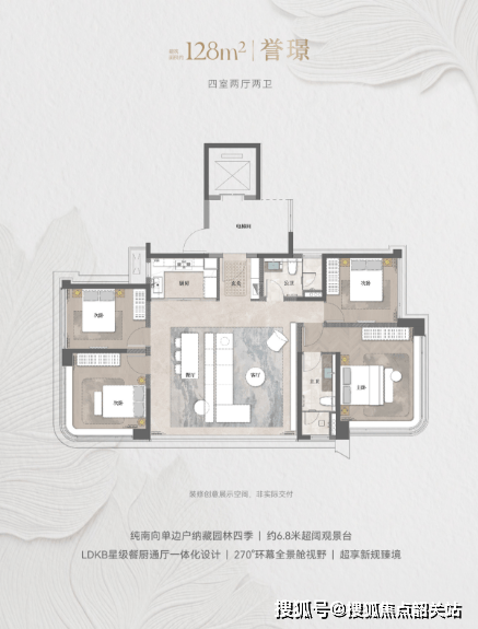 【誉璟】建面约128㎡四室两厅两卫:紧凑实用,布局灵活,适合小家庭或首次置业者。
