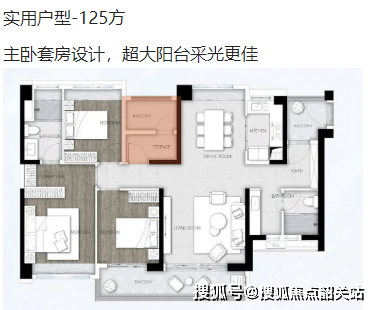 125㎡四房:主卧套房实测面积 18㎡,含独立卫浴与步入式衣帽间,南向阳台连接客厅与次卧,采光面达 11 米,实测通风效率较同面积户型高 15%;