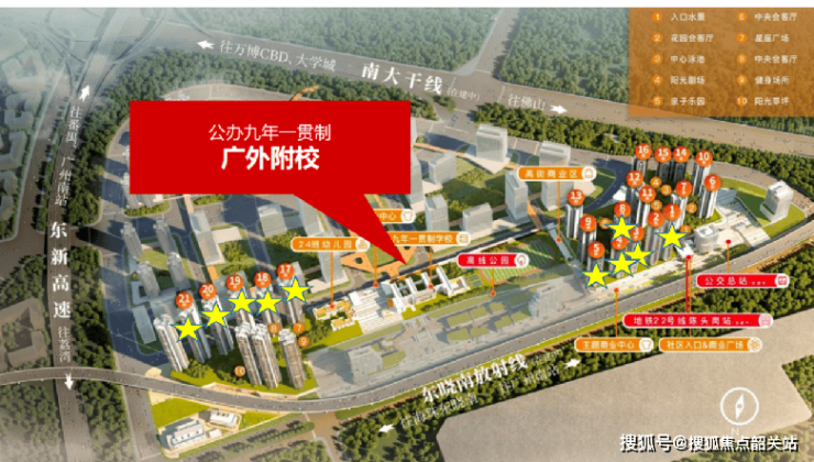 项目内配建了一所27班幼儿园和一所公办九年一贯制广外附校,解决了家长对孩子教育的后顾之忧。广外附校作为广州“三巨头”之一,在外语教育方面有着卓越的表现,其民办学校的学费通常在4-6万元/年。而在星瀚TOD,由于学校性质为公办,这意味着业主的孩子将享受到免费的优质教育资源,节省了大量的教育费用。