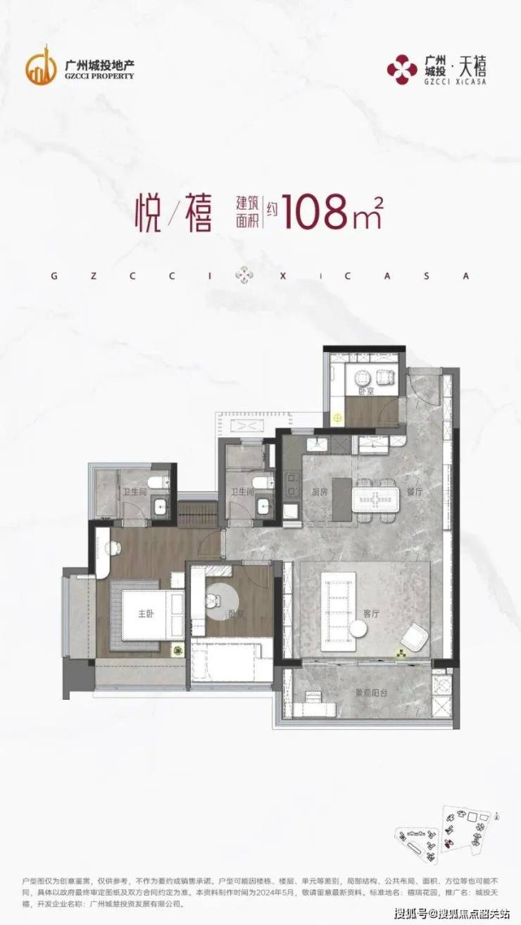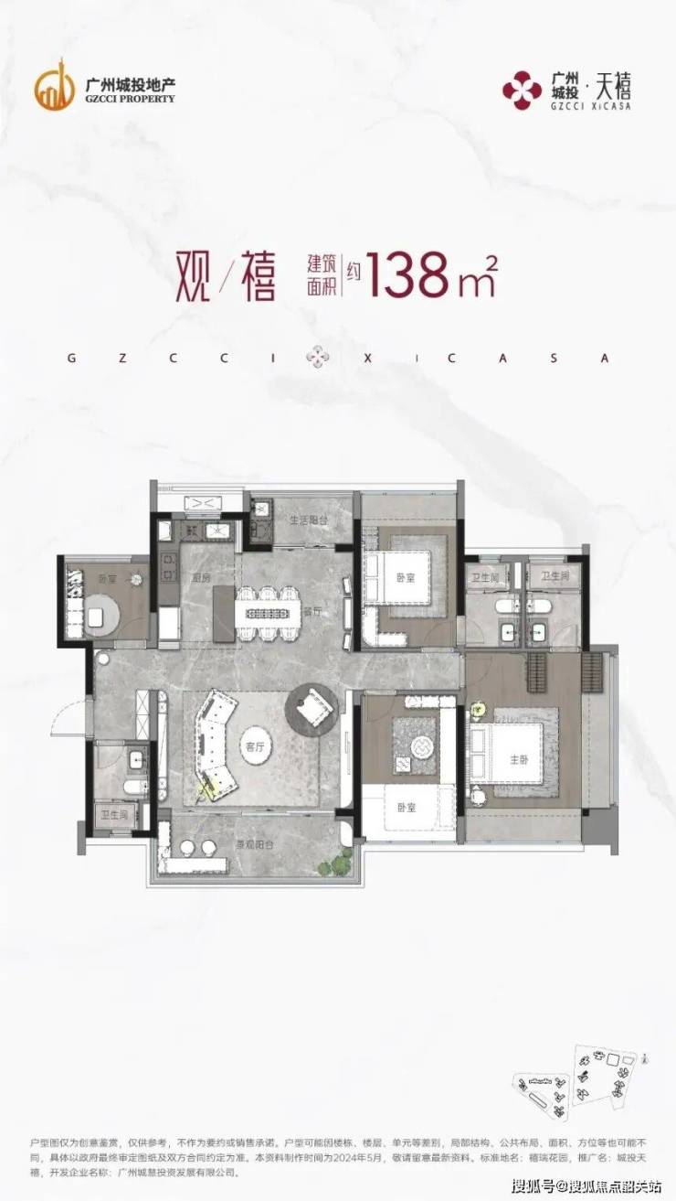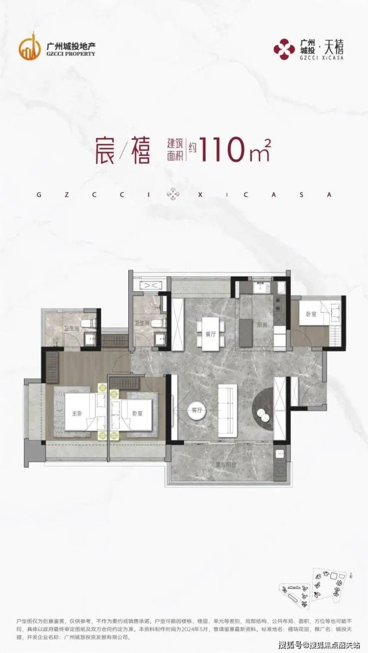 广州城投天禧在售户型涵盖108㎡三房二厅一卫、110㎡三房二厅二卫、138㎡四房二厅三卫,均为南向或南北通透设计,得房率约82%-85%,空间利用率高,能满足不同家庭的居住需求。