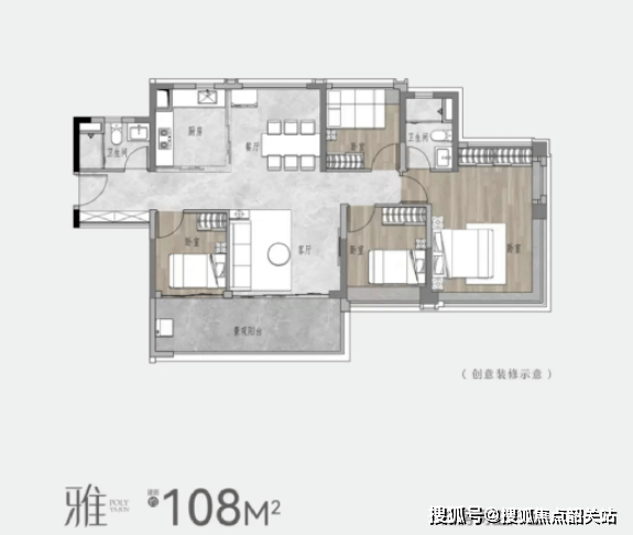 约109㎡四房两卫 ≈ 广钢约139-148㎡旧规四房。