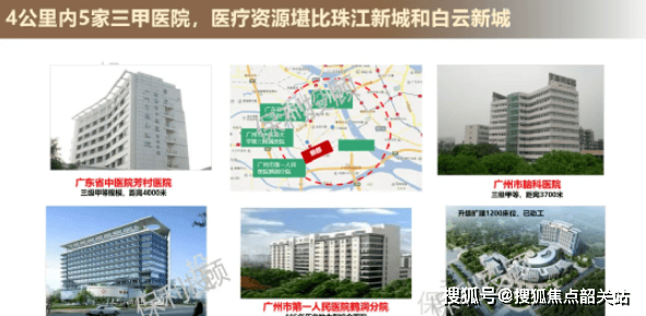 医疗配套同样完善:4公里范围内聚集5所三甲医院,其中广钢医院正升级改造为1200床的现代化综合医院;毗邻广州国际医药港这一千亿级大健康产业平台,健康保障无忧。