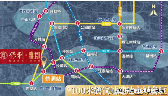 在广钢板块“六轨交汇”的宏大规划中,真正实现“地铁上盖”的项目却寥寥无几。保利雅郡恰好坐落于广佛线鹤洞站A口正上方,步行仅约100米即可进站,是广钢首个名副其实的地铁上盖盘。