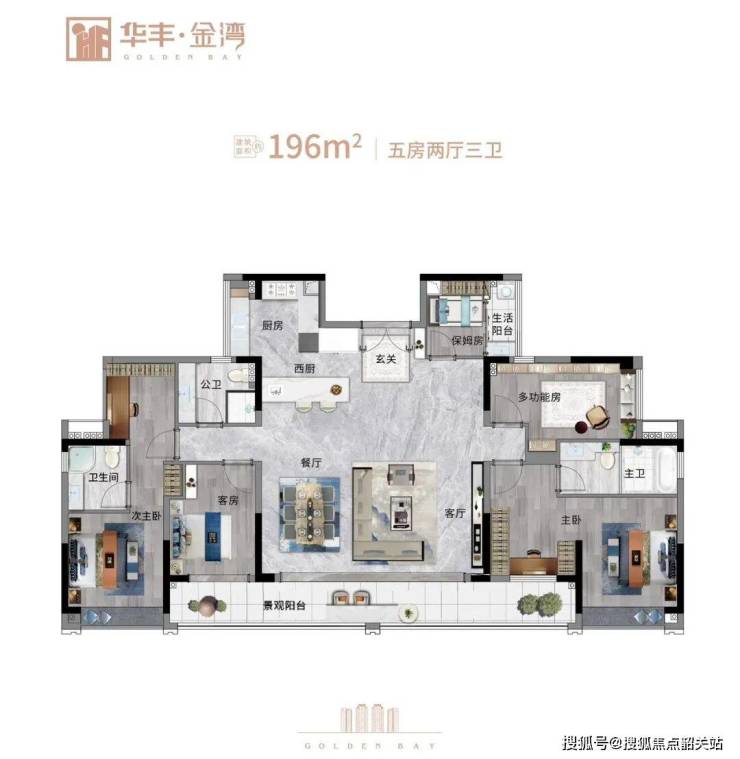 华丰·金湾总建筑面积约15万㎡,主推建筑面积98-150㎡精装修南向户型,总户数约850户,容积率约2.8。项目整体低密度设计,楼间距超过120米,保证采光通风及景观可视性。户型设计上创新打造多功能X空间,可灵活改造成茶室、办公区、亲子阅读室或收藏空间,满足家庭多元生活需求。每户均配备约6.5米开间景观阳台,直面江景,南北通透通风,最大化利用灵山岛尖稀缺江景资源。住宅动线合理,餐厅、客厅及卧室布局科学,兼顾舒适性和实用性。华丰·金湾不仅提供高品质江景住宅,更强调户型灵活性和居住舒适感,打造片区唯一全南向瞰江精品住宅标准。