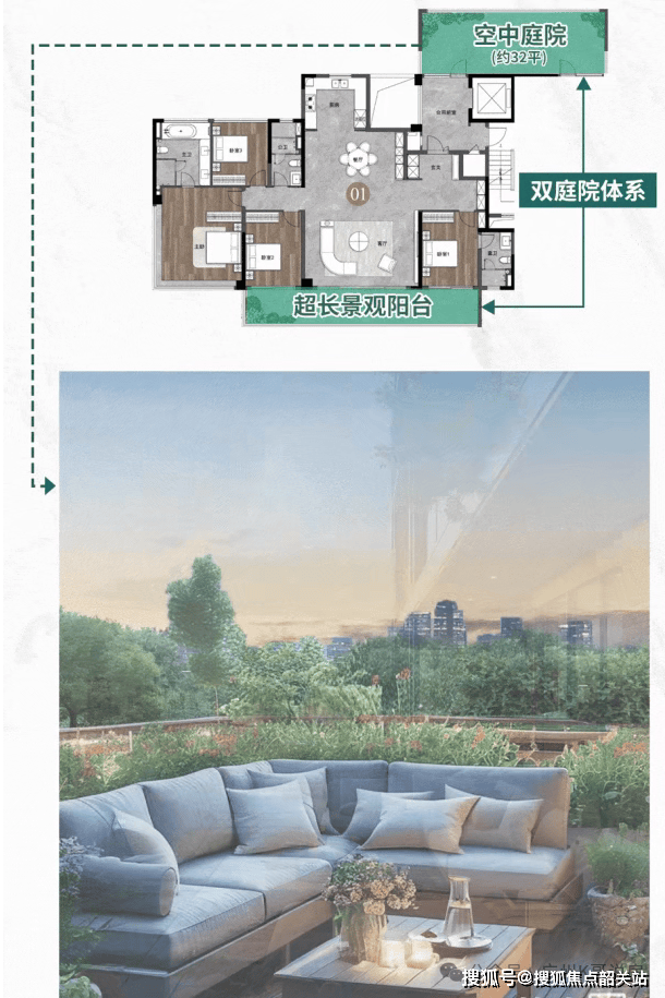 这得益于多重政策红利叠加:阳台面积占比鼓励提升至30%,半开敞空间按投影面积50%计容,且主景观阳台在满足连续开敞率不低于40%的前提下不限进深。以建面约130㎡户型为例,可享约48㎡空中庭院;169㎡板楼更配约34㎡露台,真正实现“户户有花园、家家见绿意”。