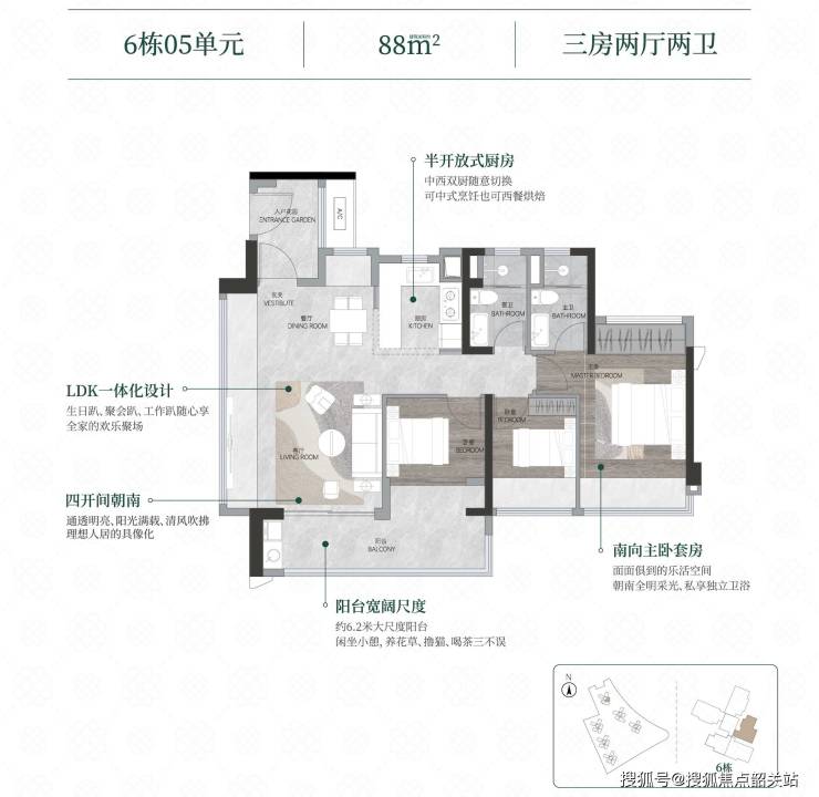 主力户型集中在82-141㎡,全部南向,符合广州新规要求。其中95㎡三房做到三开间朝南,阳台进深1.8米,既能种花也能挂晒衣物;120㎡四房则采用LDKB一体化设计,客厅与阳台打通后视野更开阔。所有户型都优化了玄关收纳和卫生间干湿分离,没有为了“多一间房”牺牲动线合理性。