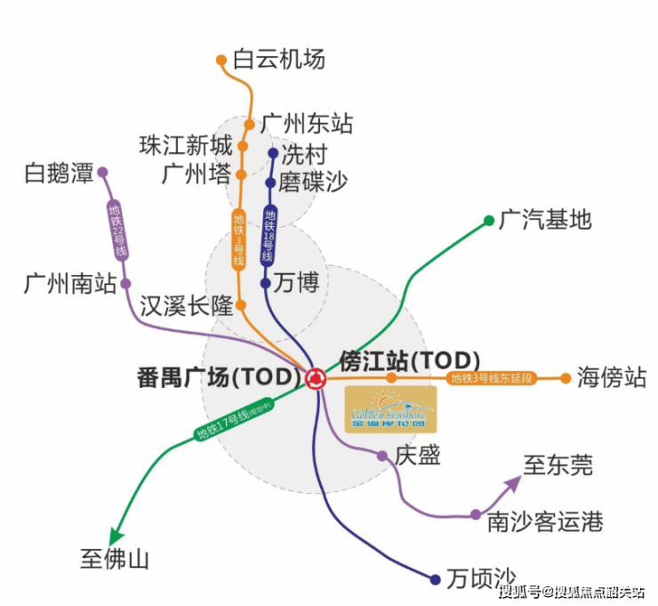 交通便利性:紧邻地铁3号线东延段傍江站,一站直达番禺广场、两站万博CBD、三站广州南站及琶洲、四站珠江新城。周边还有规划中的17号线、18号线和22号线,形成了一个便捷的轨道交通网络。