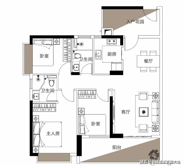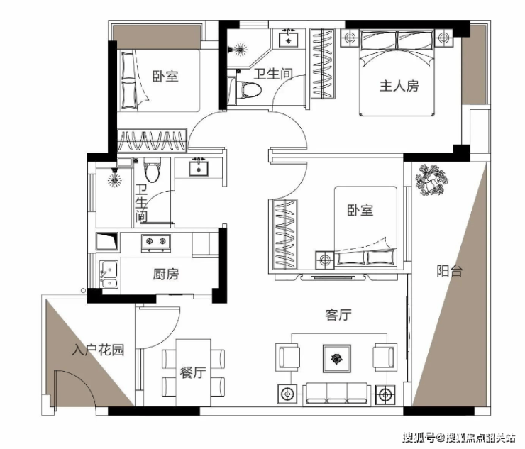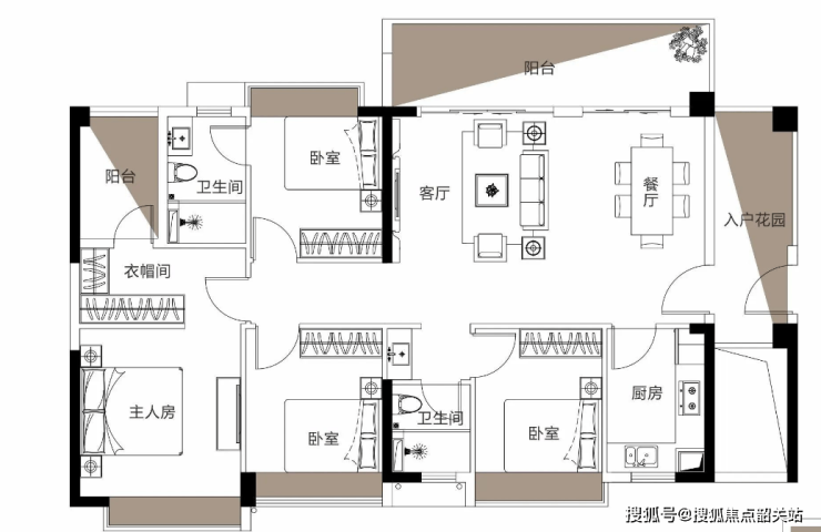 85-138㎡户型:均为高拓展面积户型,入户花园、阳台、飘窗、卧室、露台等均有赠送空间;可随心打造成多功能百变空间,满足居者使用需求;推窗即可饱览水岸优质景观。