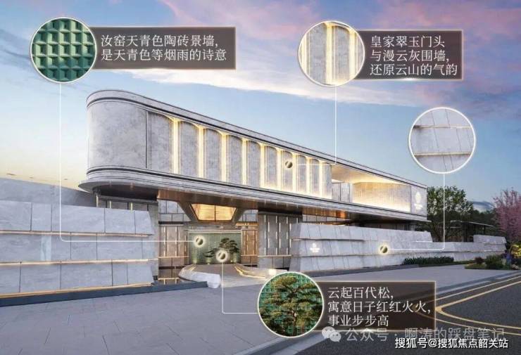 国贸・绿城 | 云樾和鸣以 “引山入园” 为核心理念,打造了 “四幕九境” 的东方意境园林,将白云山的 “云、林、泉、石” 四种自然元素解构重组,融入社区园林景观打造,在城市核心区复刻了云山诗意的居住体验。项目社区主入口采用皇家翠玉门头与漫云灰石材打造,还原了白云山层峦叠嶂、云雾缥缈的气韵,入口处设置云起百代松与汝窑天青色陶砖景墙,打造了极具仪式感的归家第一境。社区内以蜿蜒的游山廊作为动线骨架,串联起林、泉、溪、石等多重景观节点,环形洄游的森林小径营造了 “曲径通幽” 的景观意趣,溪谷景观依自然高差打造,野山石错落堆叠,复刻了白云山溪谷的自然灵韵。社区中央打造了镜面水池,依托隐蔽式循环系统实现终年清澈,倒映建筑与天空,实现了 “虽由人作,宛自天开” 的景观效果。