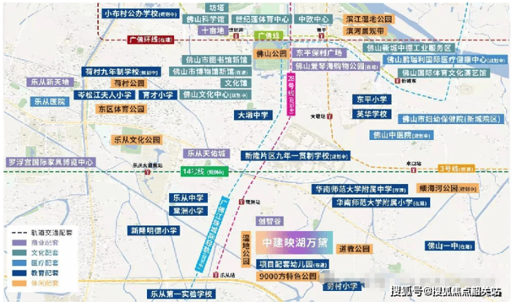 中建映湖万黛位于佛山市顺德区乐从镇,具体坐落于乐从三乐路与大罗大道交汇处东南300米。作为佛山新城与乐从板块交汇的核心位置,该项目以刚需住宅为主打,提供了约89-107㎡的纯南向三至四房户型,为年轻家庭和首次置业者提供了一个理想的居住选择。