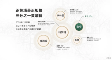 广州悦峰坐落于增城永宁板块,地处国家级增城经济技术开发区核心区(广州三大国家级开发区之一,2021 年全国综合发展水平排名 76 位),紧邻永和经济区,双产业区加持下已引进五羊本田、珠江钢琴等重点产业,未来规划导入 20 万人口,潜藏大量置业需求,区域发展潜力显著。同时项目距离黄埔、天河地理位置接近,可快速承接两区外溢的居住需求,享受主城资源辐射红利。