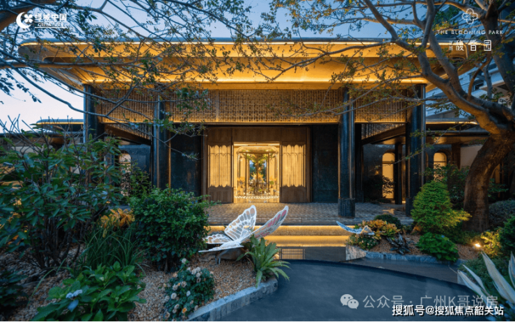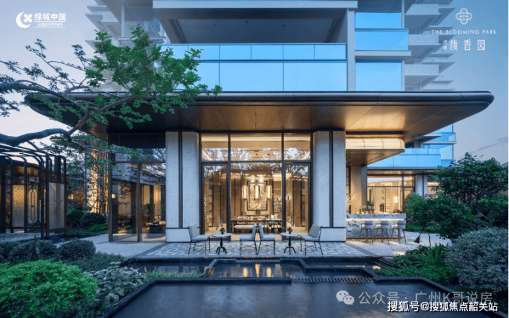 绿城馥香园以岭南名园十香园为设计灵感,融合杭州、宁波馥香园的园林打造经验,打造沉浸式游园式社区园林景观,构建 “一园多境、步步有景” 的居住体验。项目入口打造馥香门庭归家礼序,采用花瓣圆柱造型、范思哲黑石立柱、铂金钻奢石底座,复刻古代大宅府邸的尊贵归家仪式感。园区内以风雨连廊串联所有楼栋,实现廊下游园归家,雨天不湿鞋、晴天不晒阳,为业主提供全天候的舒适归家体验。园区内打造流花水院景观,借鉴东京虹夕诺雅酒店的园林设计风格,打造叠水式瀑布景观,搭配下沉式观瀑亭、露天社交会客厅,营造五星级酒店式的归家体验。