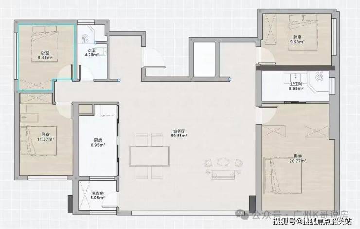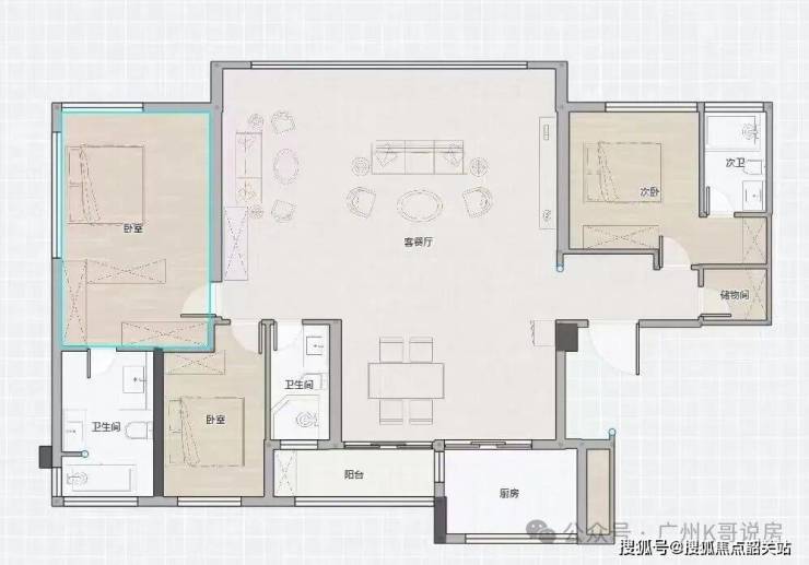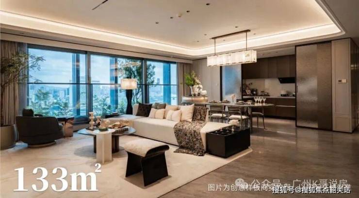 133㎡大平层,四叶草+横厅设计在广州独一无二,客厅甚至不需要打通,就能实现约7.4米大宽厅,媲美170㎡大平层。