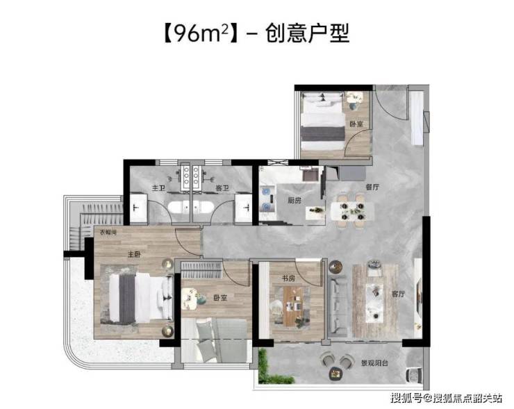 作为天河智慧城罕见的低密住区,项目容积率仅3.2,低于区域平均水平(3.8)。2梯4户的梯户比设计保障了居住私密性,全社区仅800余户,纯粹的高端改善定位吸引科技高管、企业主等峯层人士汇聚,形成同质圈层。户型面积段80-125㎡,主力为92-125㎡三至四房,所有户型均采用南北对流设计,搭配270°观景阳台或飘窗,山景渗透率达90%以上。以125㎡四房为例,独立玄关入户、LDK一体化客餐厅、270°环幕阳台,将半山景观引入室内,主卧套房配备独立衣帽间与卫浴,私密感与舒适度兼具。