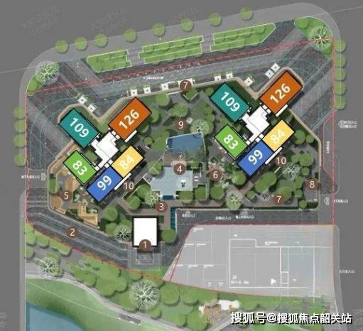 嘉悦云启占地约9.6万㎡,容积率约3.15,共规划4栋住宅,层高27–39层,靠广云路侧楼栋更高,以获得景观面与朝向优势。