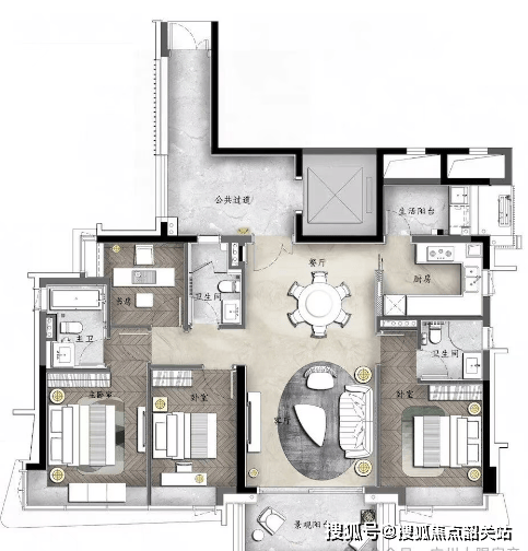 C户型:约140㎡南向园景大宅,超高性价比,三卧室朝南设计,阔绰双主套房。