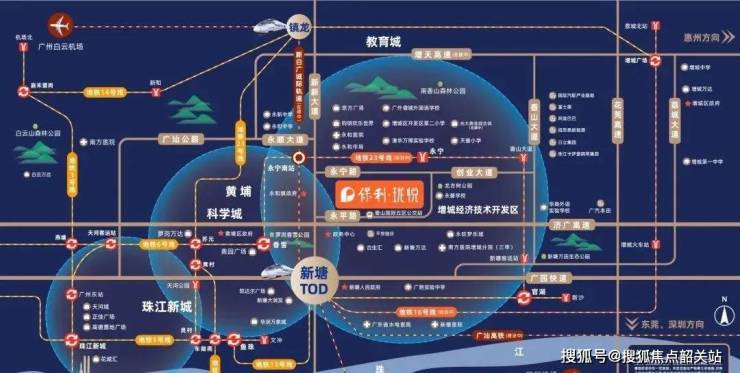 尽管永宁板块目前没有地铁覆盖,但保利珑悦通过花莞高速、增天高速以及济广高速等主要交通干线实现了与周边城市的快速连接。特别是新白广城轨永宁南站(在建中)距离项目仅约800米,未来将实现一站到达新塘TOD,两站到达镇龙TOD,极大提升了区域的通达性。