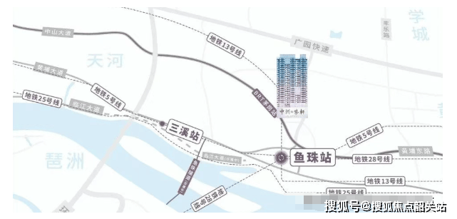 中洲紫轩位于广州市中山大道东,距离地铁5号线鱼珠站仅400米。作为广州第二CBD鱼珠核心位置的重要组成部分,它不仅坐拥黄埔茅岗板块的地理优势,更是鱼珠临港经济区和广州国际金融城交汇的关键节点。该项目由广州市星盈投资咨询有限公司开发,隶属于拥有数十年建筑开发经验的中洲集团。中洲集团在广州地区颇具知名度,曾成功打造琶洲的中洲中心、中洲交易中心等知名地标项目,并且还匠心打造了大一山庄这样的豪宅产品。