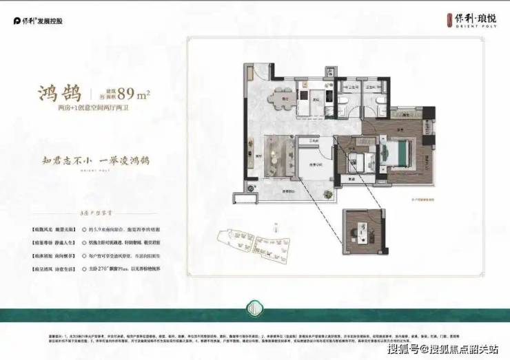 保利·琅悦推出了多种户型供您选择,从建筑面积约89㎡到173㎡不等,每一种户型都经过精心设计,旨在为您提供最佳居住体验。例如,建面约100㎡的南向四房户型,采用了LDKB设计布局,拥有约6.1米瞰景阳台,主卧配备270°飘窗Plus,四季美景尽收眼底。