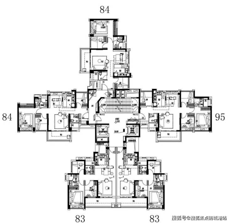 主推76-128㎡三至四房,部分户型使用率达100%。例如,建面84㎡三房实现南北对流布局,五开间朝南;建面95㎡四房设置13米南向采光面,LDKB一体化空间设计。全屋配备智能家电,拎包入住。
