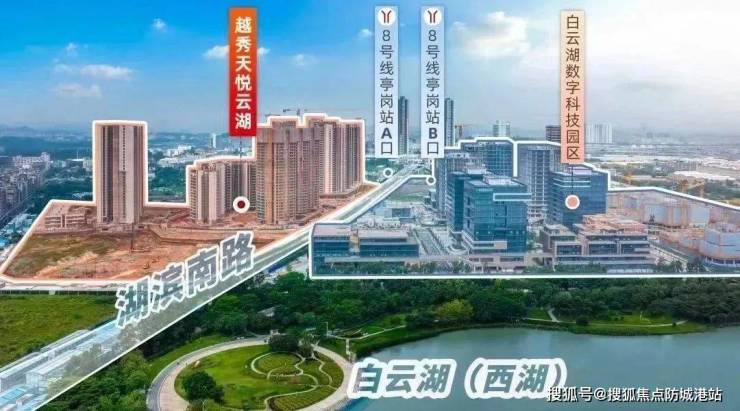 在广州“十四五”规划将白云湖数字科技城定位为“数字经济产业高地”的背景下,越秀天悦云湖凭借“地铁上盖+一线湖景+全屋智能”三重稀缺价值,成为2025年广州楼市的焦点。项目直线距离白云湖西湖仅50米,下楼即达200万㎡生态公园,同时坐拥地铁8号线亭岗站B出口零距离接驳,30分钟直达琶洲、珠江新城,完美契合都市精英对“高效通勤+生态宜居”的双重需求。
