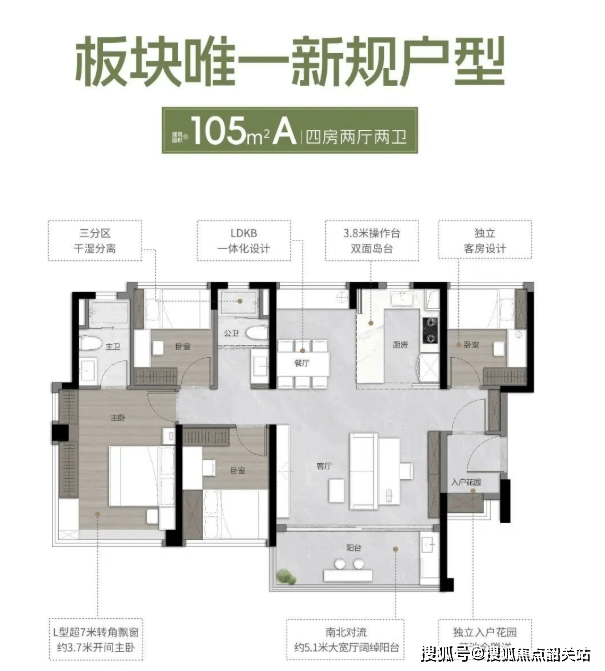 103㎡四房配备7米瞰景阳台与独立入户花园;