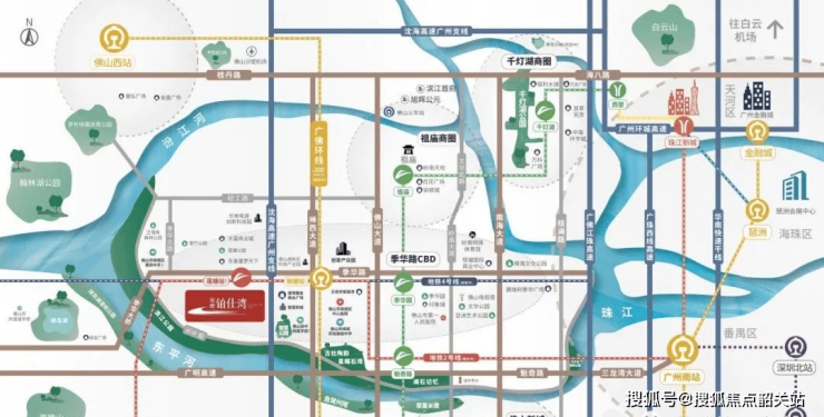 项目交通优势明显,位于禅城中心区域,周边轨道交通完善。紧邻佛山地铁2号线智慧新城站,距离约500米,可快速接驳广州南站,实现广佛双城无缝出行。同时项目规划对接广佛地铁4号线以及广佛环线城际,形成三轨交汇交通网络,未来将与广州多条核心线路互联互通。周边道路布局合理,东西向有季华路、东平路等干道,南北向有岭南大道、佛山大道等主干道,为居住者提供高效通勤条件,日常出行及商务出行均便利,兼顾生活和工作需求。