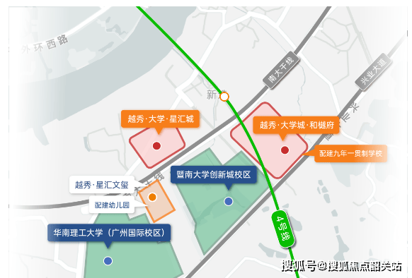 基础信息 为了让大家能够快速、清晰地了解项目的核心基础参数,我们整理了项目的关键指标,全部为官方核实后的准确数据,一行一个参数,方便您快速查阅: 项目地址:广州市番禺区国际创新城大学城二期暨南大学北侧 开发商:广州新越房地产开发有限公司(越秀地产全资子公司) 产权年限:70 年住宅产权 总建筑面积:约 60 万㎡ 容积率:约 2.8 绿化率:约 35% 物业费:越秀物业,约 2.8 元 /㎡/ 月 装修情况:精装现楼