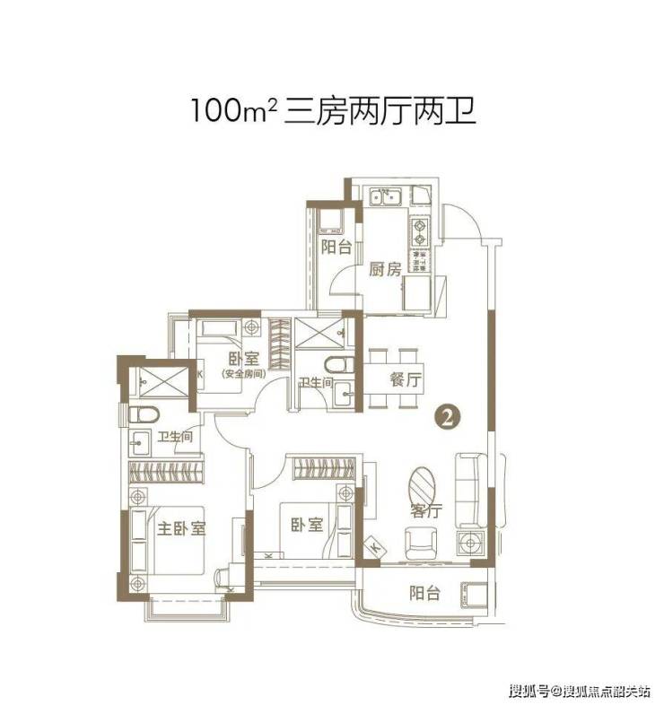 建面约100㎡/3房2厅2卫