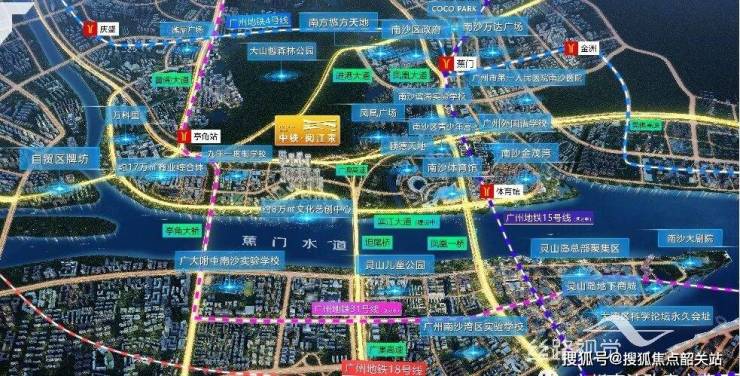 交通是判断项目价值的重要维度。从现有条件来看,项目周边已接入地铁4号线与18号线,未来还将新增15号线(规划),形成三轨交汇格局。根据测算,项目到最近地铁站通勤时间约10分钟内,具备较好的出行效率。18号线作为广州高速地铁代表线路,设计时速达160km/h,可快速连接珠江新城等核心商务区。自驾方面,通过南沙港快速路及城市主干道,约30分钟可达中山,40分钟左右到东莞核心区,1小时覆盖广深主要城区。这种交通条件,基本满足“湾区一小时生活圈”的通勤需求。