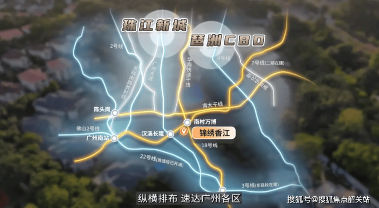 布查特官邸位于番禺大道与汉溪大道交汇处,直线距离万博CBD约1.5公里,长隆旅游度假区约800米,形成“10分钟工作圈+5分钟生活圈”的完美闭环。周边3公里内覆盖7号线、18号线、3号线三地铁,其中18号线快线3站直达珠江新城(冼村站),车程仅15分钟,通勤效率远超琶洲、金融城等板块。