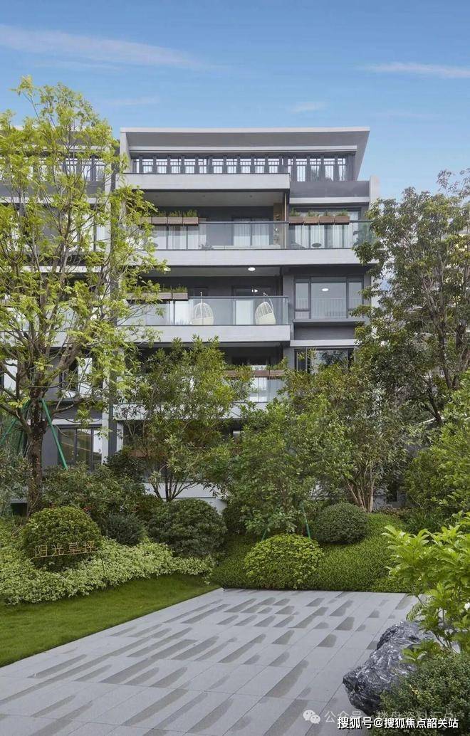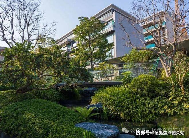项目开发理念中融入城市礼序式园林体系,打造三进式归家仪式空间。从城市道路进入社区,首先进入高山流水式入口景观系统,再通过景观中轴向内部过渡,最终抵达住宅单元空间。园林体系结合东方园林文化与现代景观设计语言,形成“一轴三横六巷”的景观格局。社区景观强调四季植被变化与生态微循环系统,通过多层植被结构提高城市微气候调节能力。