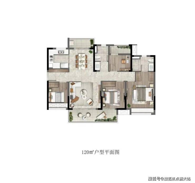 建面约120平方米户型:宽敞明亮,功能分区明确。